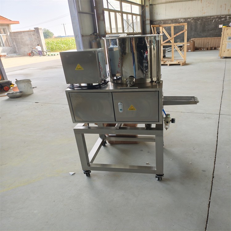 肉餅成型機帶自動刮料的工作原理主要基于擠壓、切割和刮料三個步驟。機器內(nèi)部設(shè)有送料槳葉和成型滾筒,兩者同步運轉(zhuǎn),確保肉餡能夠被充分送入成型腔室。在擠壓過程中,肉餡受到均勻的壓力,從而形成所需的形狀。隨后,切割系統(tǒng)會對肉餅進行切割,以確保其尺寸和重量達到要求。自動刮料系統(tǒng)則負責在每次成型后,將附著在模具或機器內(nèi)壁上的肉餡刮除干凈,以便進行下一次成型操作。