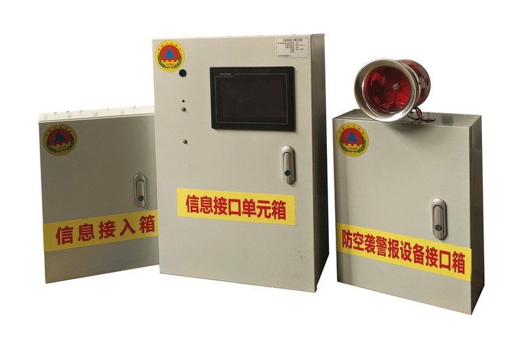信息接口單元箱安裝在各個(gè)防護(hù)單元的指揮通信值班室內(nèi),箱體材質(zhì)為金屬外殼,外形尺寸不小于400mm×300mm×120mm,安裝方式可墻掛或內(nèi)嵌,距地面1.5m,內(nèi)置防空襲報(bào)警信息接收顯示控制設(shè)備、網(wǎng)絡(luò)交換機(jī)、光纖收發(fā)器等數(shù)據(jù)轉(zhuǎn)換與傳輸設(shè)備。