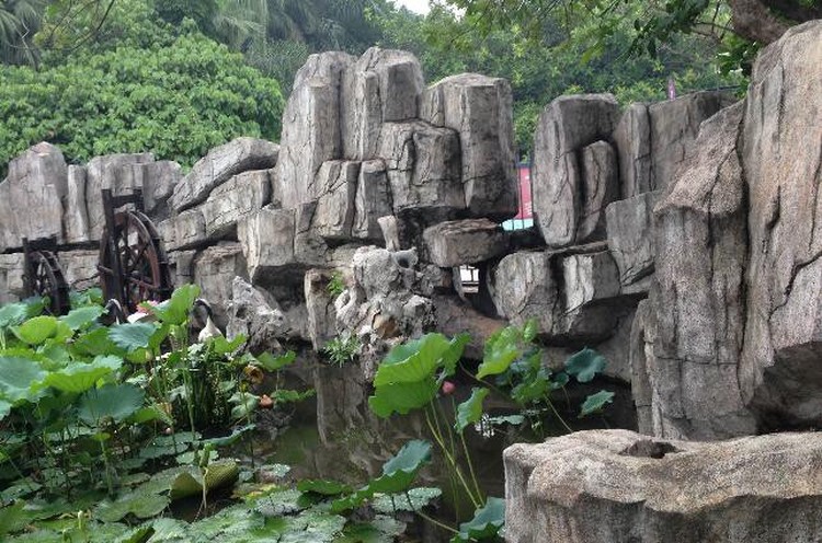 天然之韻,生態(tài)再造。生態(tài)園大型水泥假山摒棄天然石材的開采與運輸,以低碳環(huán)保工藝打造,減少生態(tài)損耗,同時以工藝自然山石的肌理與質(zhì)感,每一處細節(jié)都盡顯自然之美??招脑O(shè)計自重輕盈,適配多種地形,安全穩(wěn)固,抗風(fēng)抗震、防水防裂,使用壽命可達數(shù)十年??啥ㄖ迫芏础B水、懸崖等多樣造型,搭配流水、燈光、綠植,營造出靈動自然的生態(tài)意境,與生態(tài)園的自然肌理深度融合。既能提升生態(tài)園的景觀層次感,又能為昆蟲、鳥類提供棲息空間,助力生態(tài)循環(huán),彰顯“生態(tài)、自然共生”的造景理念,成為生態(tài)園不可或缺的核心景觀。