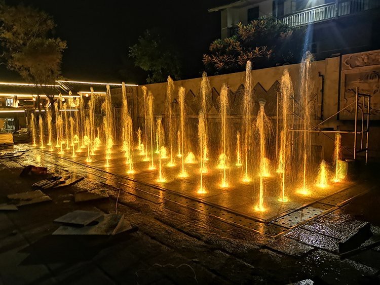 8、旱噴泉:又叫旱地泉,放置在地下,噴頭和燈光設(shè)置在蓋板下端。