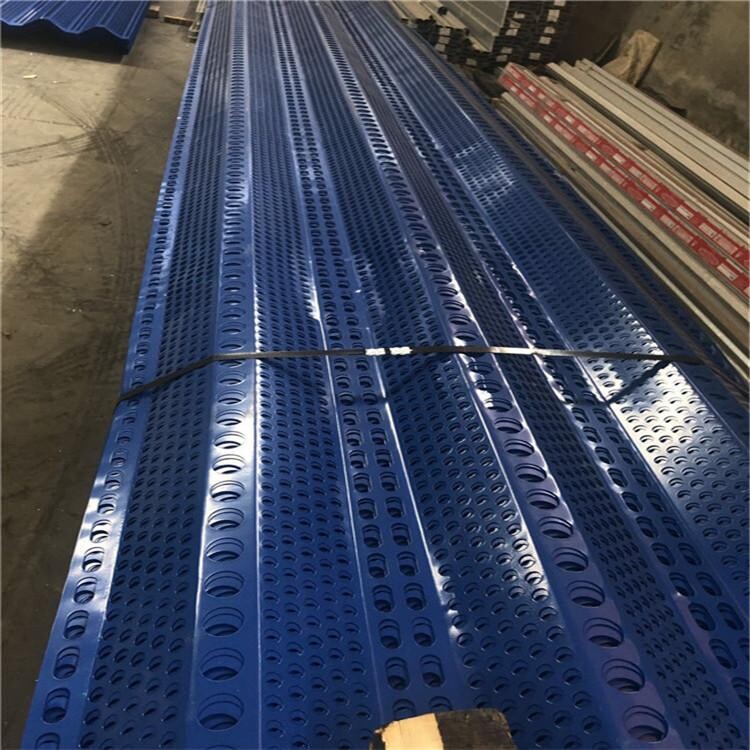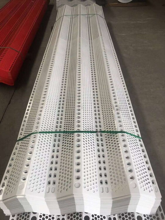 防風(fēng)抑塵網(wǎng)是利用空氣動力學(xué)原理,按照實施現(xiàn)場環(huán)境風(fēng)洞實驗結(jié)果加工成一定幾何形狀、開孔率和不同孔形組合擋風(fēng)抑塵墻,使流通的空氣(強(qiáng)風(fēng))從外通過墻體時,在墻體內(nèi)側(cè)形成上、下干擾的氣流以達(dá)到外側(cè)強(qiáng)風(fēng),內(nèi)側(cè)弱風(fēng),外側(cè)小風(fēng),內(nèi)側(cè)無風(fēng)的效果,從而防止粉塵的飛揚(yáng)。
