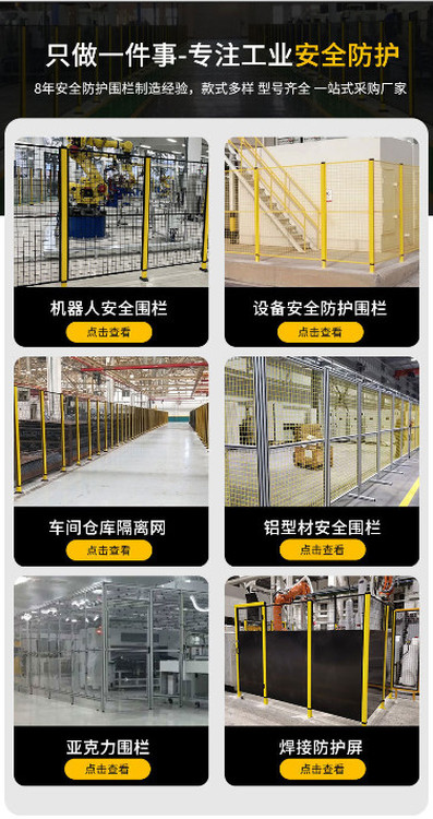 倉庫隔離網(wǎng)、機(jī)器人防護(hù)網(wǎng)、機(jī)械設(shè)備圍網(wǎng)、工業(yè)自動化圍網(wǎng)