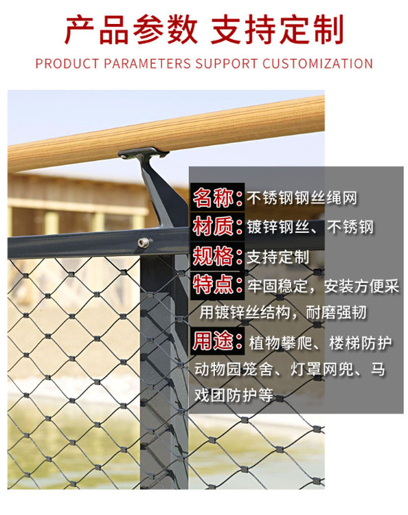 虎獅豹圍網(wǎng)、籠舍網(wǎng)、圍欄網(wǎng)等防護網(wǎng)常用不銹鋼繩網(wǎng)規(guī)格參數(shù)如下: