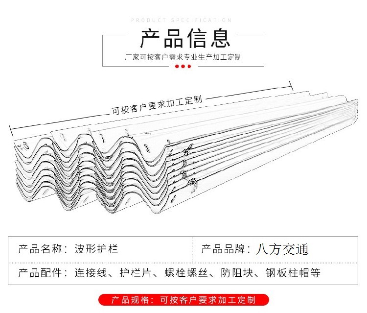 3、波形梁護欄鋼柔相兼,波形護欄具有較強的吸收碰撞能量的能力,具有較好的視線誘導功能,能與道路線形相協(xié)調(diào),外形美觀,可在小半徑彎道上使用,損壞處容易更換。波形護欄常用規(guī)格