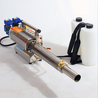 煙霧彌霧兩用機是由汽油為燃料,工作時脈沖式發(fā)動機產生的高溫高壓氣流從噴管出口處高速噴出,打開藥閥后,藥品箱里的氣壓將藥品液壓至爆發(fā)管內,與高溫高速氣流混合,在相遇的瞬間,藥液被粉碎霧化成煙霧狀,從噴管中噴出,并迅速擴散,彌漫,當被防治的對象接觸到彌霧或煙霧時,從而達到殺蟲或滅菌的作用。
