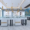 燈光是凸顯眼鏡質(zhì)感的核心要素,需構(gòu)建基礎(chǔ)照明、照明與氛圍照明的三層體系?;A(chǔ)照明采用均勻分布的筒燈,確保店鋪整體亮度適中;照明選用4000K中性光射燈,以15度傾斜角聚焦鏡架,避免反光刺眼,側(cè)方隱藏式燈帶可營(yíng)造柔和漫反射效果。款式可搭配聚光燈強(qiáng)化展示,讓鏡片光澤與鏡架細(xì)節(jié)清晰呈現(xiàn)。